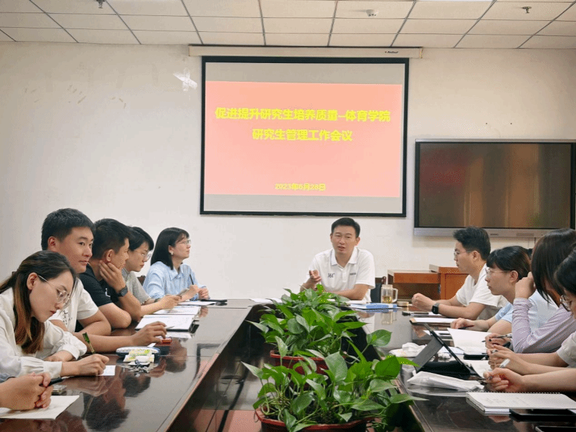 为进一步提升学院研究生培养质量,推动学院研究生教育工作发展,体育学院围绕“促进提升研究生培养质量”为主题于6月28日下午在学院会议室召开了研究生管理工作专项会议。必威BETWAY西汉姆联副院长高进、学生辅导员文雅、科研秘书任崇鑫出席会议,会议由学院学研办主任王雁主持,必威BETWAY西汉姆联全体研究生参加。