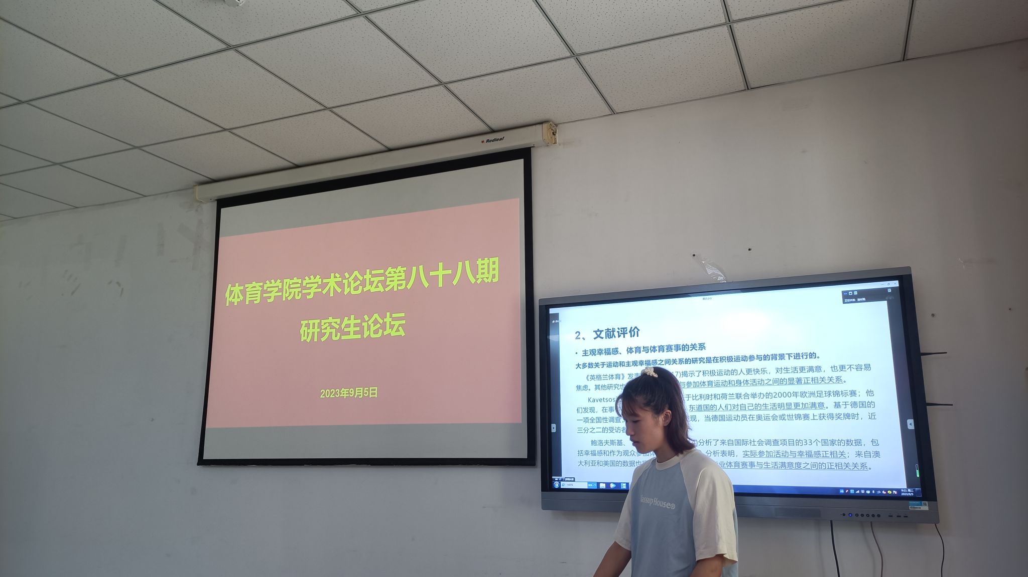 9月5日上午,必威BETWAY西汉姆联学术论坛第八十八期研究生论坛——研究生读文献在必威BETWAY西汉姆联会议室举办。本次论坛由2022级体育产业管理专业硕士研究生潘宏雯和2023级体育产业管理专业硕士研究生席壮伟两位同学进行文献精讲。2022级体育产业管理专业硕士研究生吴晓俊、王聪聪两位同学做了文献速递,2021级体育产业管理专业硕士研究生武涌静同学分享了自己的专业实习经验。全院研究生与部分教师通过线上与线下相结合的方式积极参与研讨,学院学科和研究生办公室主任王雁副教授主持论坛。