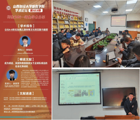 11月28日上午,必威BETWAY西汉姆联学术论坛第一百零三期师生论坛——师生学术分享在必威BETWAY西汉姆联会议室举办。本期论坛特邀我院青年博士教师樊哲昀做学术分享,2022级体育产业管理专业硕士研究生张辰宇同学做文献精讲,2021级体育产业管理专业硕士研究生许海鸥、张逸杰两位同学进行文献速递。学院中青年教师许磊、胡荣光、张宇竹、刘铮及全体研究生积极参与讨论,学院学科和研究生办公室主任王雁副教授主持论坛。