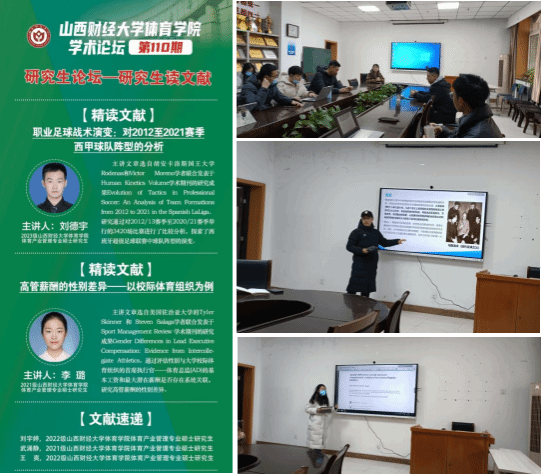 1月2日上午,必威BETWAY西汉姆联学术论坛第一百一十期研究生论坛——研究生读文献在必威BETWAY西汉姆联会议室举办。本期论坛是2024年开年第一期,也是本学期研究生读文献活动的收官一期,由体育产业管理专业硕士研究生2023级刘德宇和2021级李璐两位同学进行文献精讲,2022级刘宇婷做文献速递。学院青年博士教师樊哲昀及全体研究生共同参与研讨交流,学院学科和研究生办公室主任王雁副教授主持论坛。