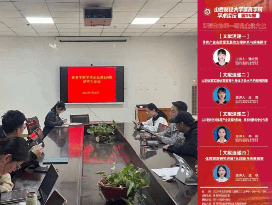 3月26日上午,必威BETWAY西汉姆联学术论坛第一百一十四期——研究生读文献在必威BETWAY西汉姆联会议室举办。本次论坛由体育产业管理专业硕士研究生2022级潘宏雯、王爽、孟祺,2023级关妮四位同学做文献速递。必威BETWAY西汉姆联全体研究生参与研讨与交流,学院学科和研究生办公室主任王雁副教授主持论坛。
