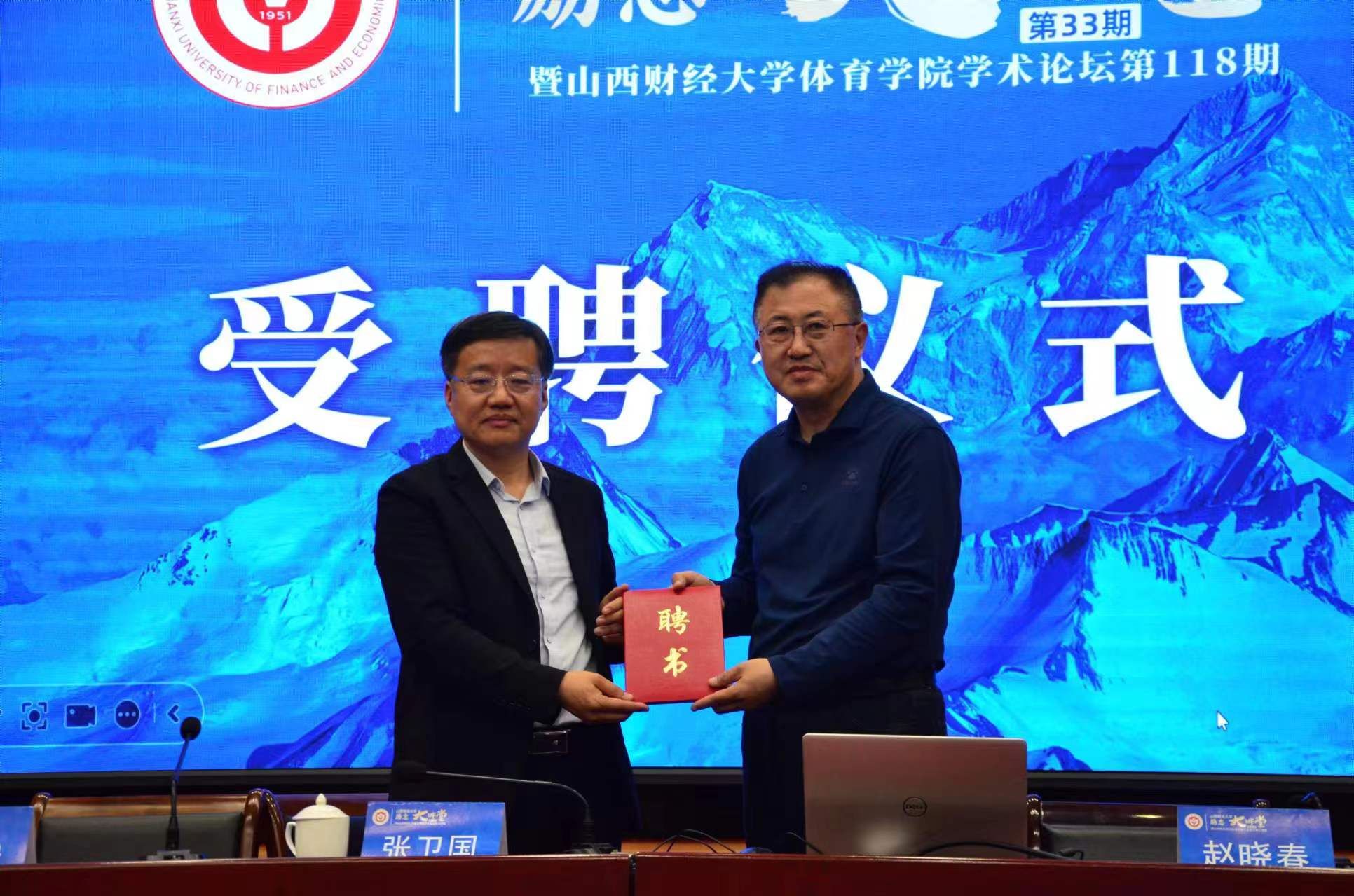 讲座开始前,张卫国与赵晓春进行了座谈,并代表学校接收了赵晓春捐赠的著作《体育的中国化与现代化——以运动项目为中心》《何处是远方》《我的母亲》《半日闲斋古体诗存》等,共计23本,向赵晓春颁发了“必威西汉姆联就业创业导师聘书”。就业创业中心主任、创业学院院长史成安代表学校与山西搏之美文化交流公司董事长王 刚签订了《山西搏之美文化交流有限公司、必威西汉姆联创业学院战略合作协议》。