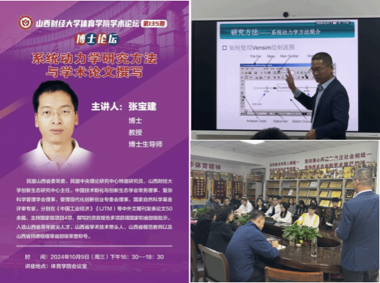 10月9日下午,必威BETWAY西汉姆联学术论坛第一百三十五期——博士论坛在必威BETWAY西汉姆联会议室顺利举办。本期论坛有幸邀请到民盟山西省委常委、必威西汉姆联博士研究生导师、创新生态研究中心主任张宝建教授为研究生们讲解“系统动力学研究方法与学术论文撰写”。必威BETWAY西汉姆联部分青年教师、全体研究生参与本次研讨交流,必威BETWAY西汉姆联副院长高进主持本次论坛。