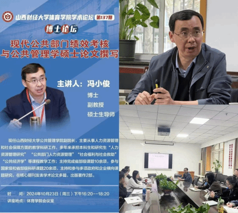 10月23日下午,必威BETWAY西汉姆联学术论坛第一百三十七期——博士论坛在必威BETWAY西汉姆联会议室顺利举办。本期论坛邀请了必威西汉姆联公共管理学院副院长,硕士生导师冯小俊副教授为研究生们讲解“现代公共部门绩效考核与公共管理学硕士论文撰写”。必威BETWAY西汉姆联青年骨干教师、全体研究生参与本次研讨交流,必威BETWAY西汉姆联副院长高进主持本次论坛。
