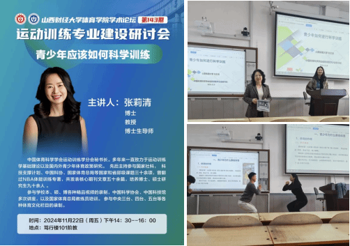 11月22日下午,中国体育科学学会运动训练学分会常委兼秘书长、中国体育科学学会运动训练学分会常委兼秘书长,国家教练员学院教练员培训讲师、北京体育大学博士生导师张莉清教授应邀为我院师生做《青少年应该如何科学训练》专家讲座。副院长王树宏主持讲座。