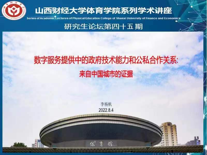 论坛第一讲由李杨帆同学分享精读文章,主讲文章为中国人民大学公共管理学院马亮教授、挪威奥斯陆大学政治科学系Tom Christensen教授及中山大学政治与公共事务管理学院郑跃平副教授联合发表的Government Technological Capacity and Public-PrivatePartnership Regarding Digital Service Delivery: Evidence from Chinese Cities来自International Review of Administrative Sciences期刊。这篇文章对中国290个地级市的数字服务提供情况展开分析,探讨了政府技术能力与其公私合作伙伴关系(PPP)选择之间存在的关系。