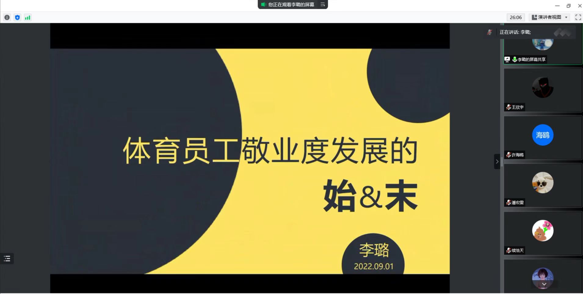 9月1日下午,我院研究生论坛第四十九期通过线上腾讯会议顺利举行。本次论坛由2021级体育产业管理专业研究生许海鸥和李璐同学分享文献阅读情况,赵佳雯同学主持会议,参与本次论坛的有我院部分任课老师和全体体育产业管理专业研究生。