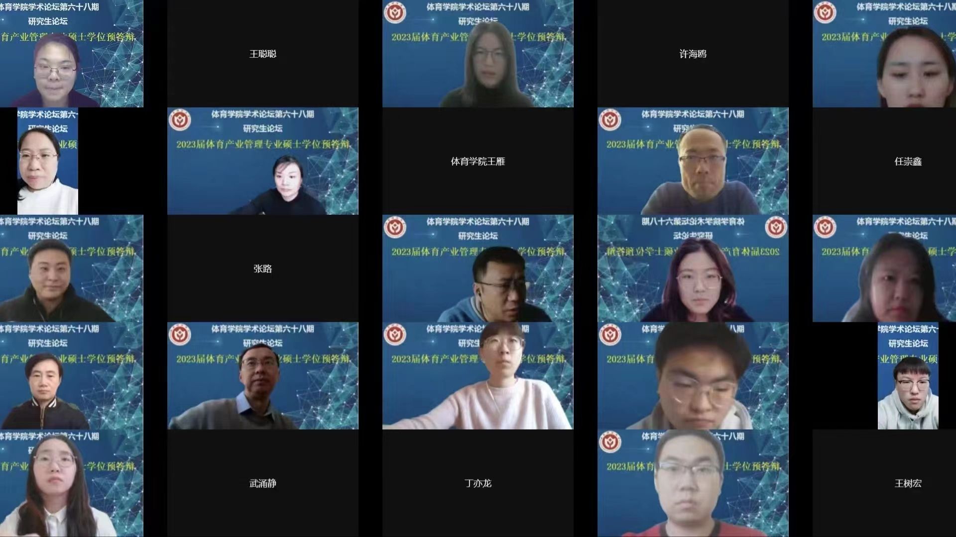 2月10日下午,我院学术论坛第六十八期研究生论坛顺利举行,本期论坛主题为“2023届体育产业管理专业硕士学位预答辩”,采用线上腾讯会议进行。预答辩委员会主席特邀公共管理学院副院长冯小俊副教授担任,委员有公共管理学院副院长刘海燕副教授、工商管理学院管理原理教研室主任张莉艳副教授、管理科学与工程学院赵文副教授、管理科学与工程学院王莉副教授。体育产业研究中心主任杨升平主持,学院全体研究生导师、部分任课老师及全体研究生参与。2020级体育产业管理专业的研究生进行预答辩。