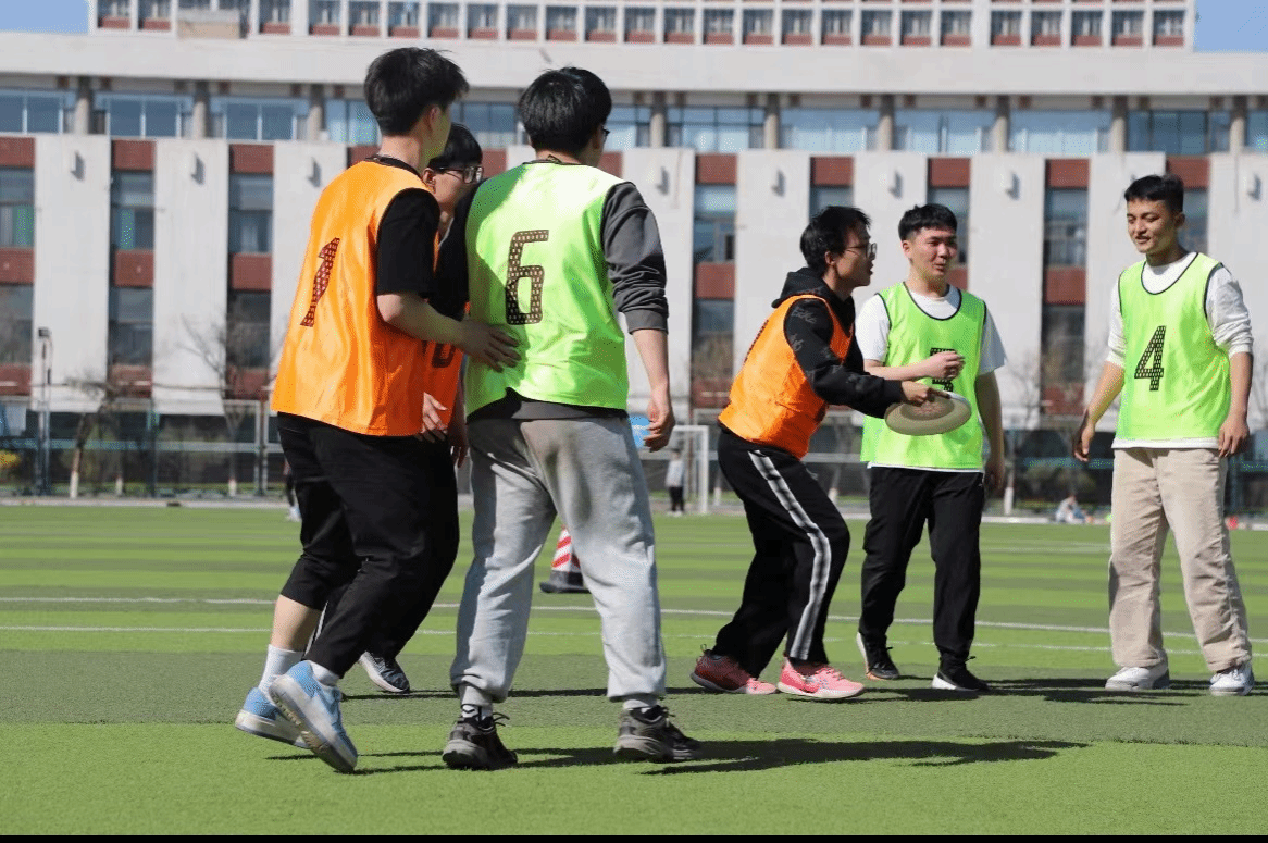 飞盘是一项新兴的团队竞技运动,综合了足球、橄榄球和篮球的运动特色,深受大学生们的喜爱,各参赛队伍互相竞技,接盘、传盘、跑位、跳跃,现场气氛活跃、融洽。同学们情绪高昂,以进攻方与防守者的角色在球场上将飞盘扔出一条条平滑有力的抛物线。飞盘划过的弧线扬起的是同学们运动的激情,留下的是队友之间恒久不变的情谊。裁判员认真履行职责,公平公正裁决,营造出良好的比赛环境。场外,拉拉队呐喊助威,不时发出掌声与欢呼声,凝聚成一股团结奋进的力量,将整个活动推向了高潮。