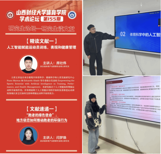 2月21日下午,必威BETWAY西汉姆联学术论坛第155期——研究生读文献在必威BETWAY西汉姆联会议室举办。本期论坛以“人工智能与体育科学”为核心议题,由体育产业管理专业2023级研究生席壮伟进行文献精讲,2024级研究生闫梦焕进行文献速递,学院全体研究生参与研讨,学院学科和研究生办公室主任王雁副教授主持论坛。