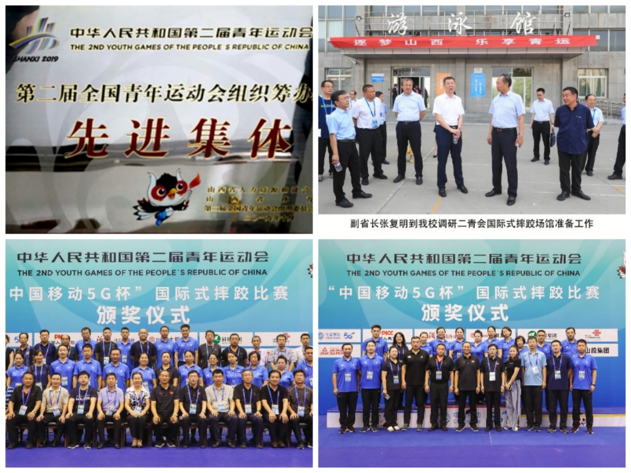 协助省市体育局、学校主管部门顺利完成了历时两年多筹建准备、并于2019年7月在我校隆重召开的“第二届全国青年运动会国际式摔跤比赛”,提高了我校的知名度和社会影响力,并获山西省人社厅、山西省体育局和二青会组委会联合颁发的“二青会优秀组织单位”奖。
