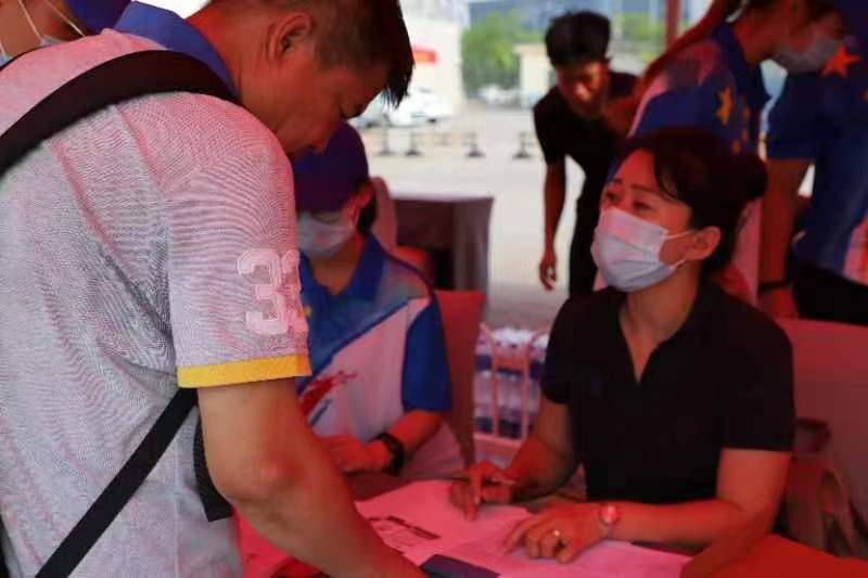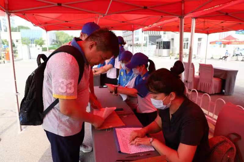 防疫检查组-----为严格落实大赛组委会疫情防控工作要求,坚守在防疫第一线的志愿者们用手中的测温枪配合消毒液对前来检录的教练员、裁判、运动员等人进行体温监测和消杀工作,并结合健康码、行程码等筑起赛事疫情防控的第一道防线,切实筑牢疫情防控屏障。