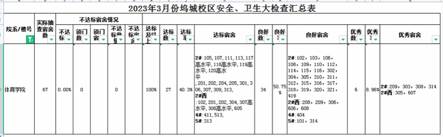 坞城校区2023年3月份宿舍检查结果